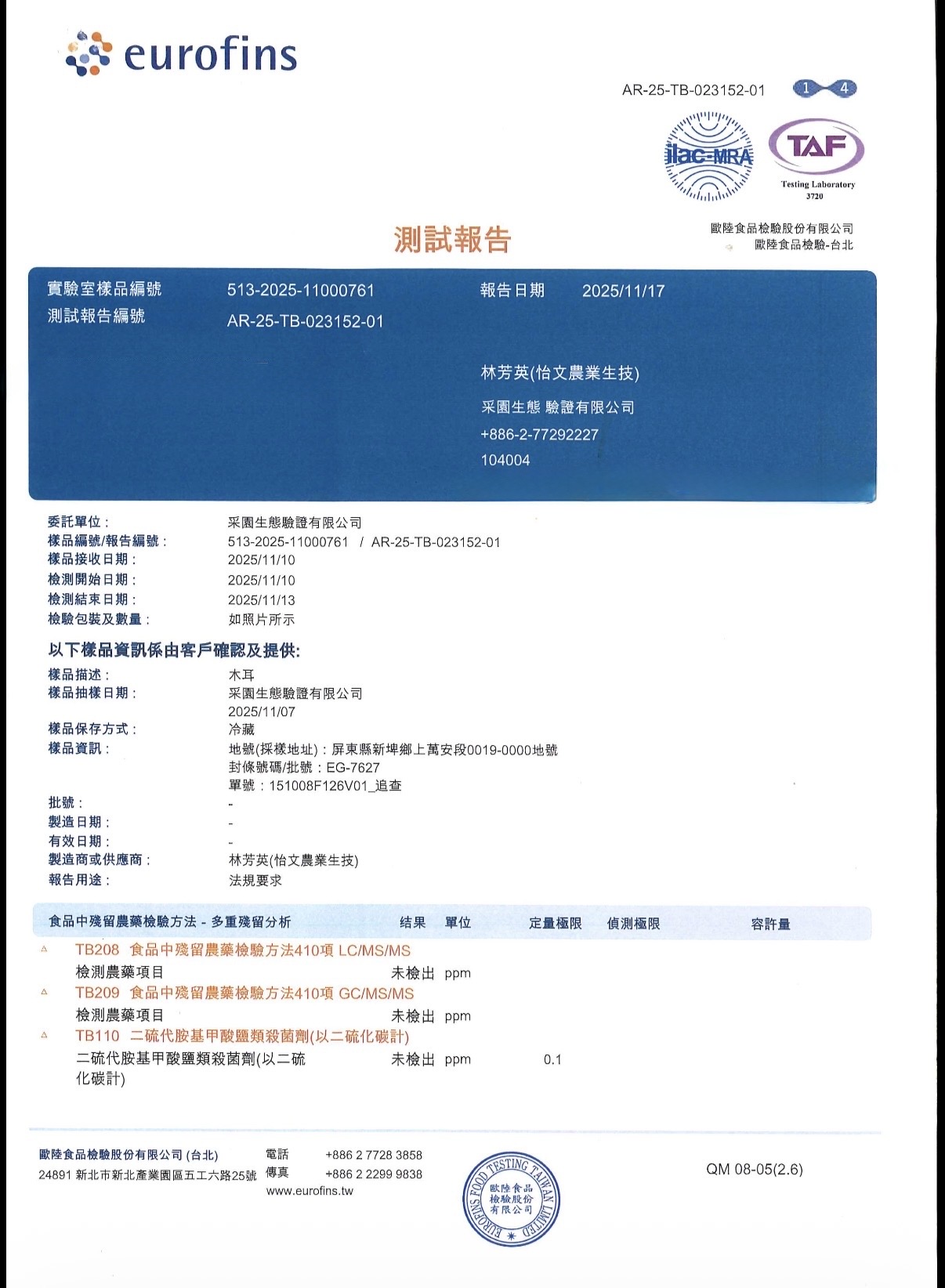 ![]() 怡文農業生技有限公司 統一編號: 24567238 |